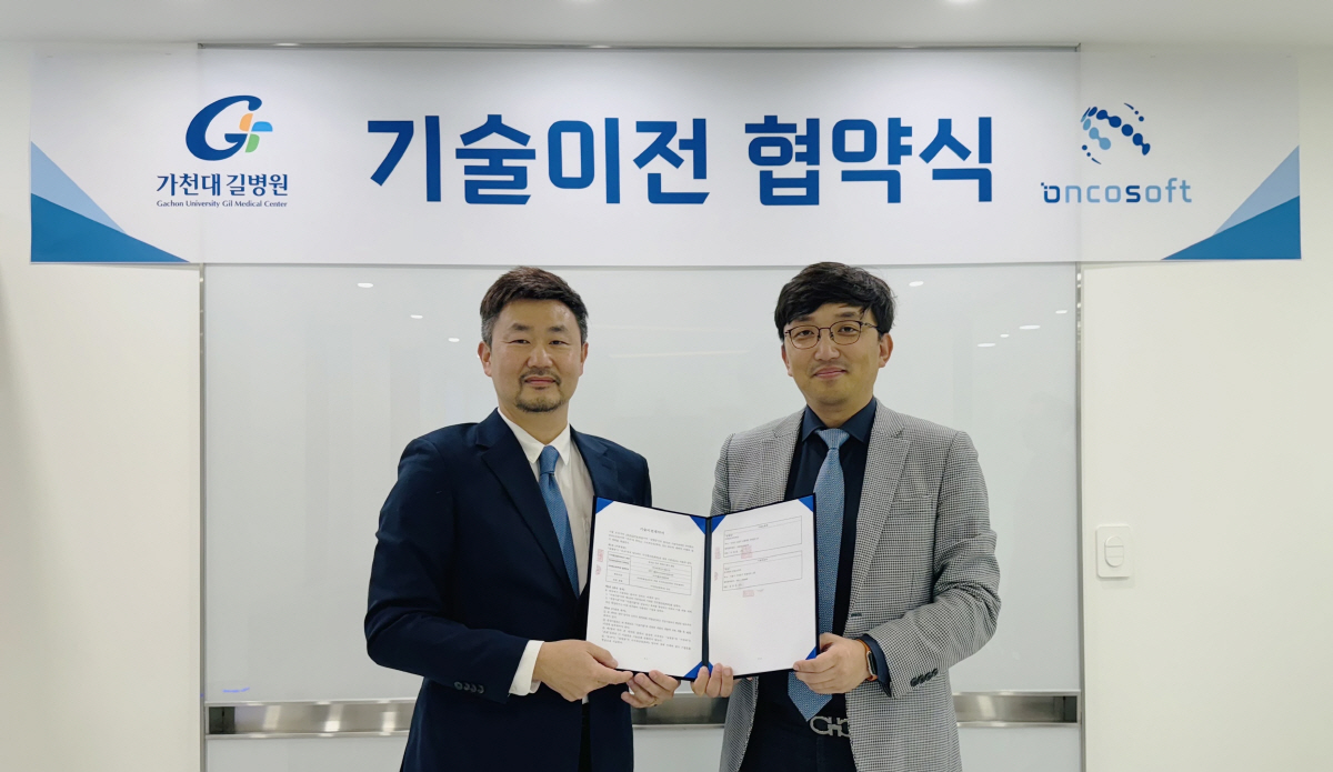 가천대 길병원 방사선종양학과가 의료 인공지능(AI) 스타트업 온코소프트와 기술이전을 위한 업무협약식을 최근 체결했다.