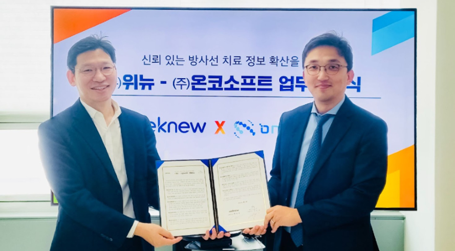 인공지능 방사선 암치료 소프트웨어 개발 기업 온코소프트와 디지털 의학정보 플랫폼 기업 위뉴가 올바른 방사선치료 정보 확산을 위한 양해각서(MOU)를 체결했다.