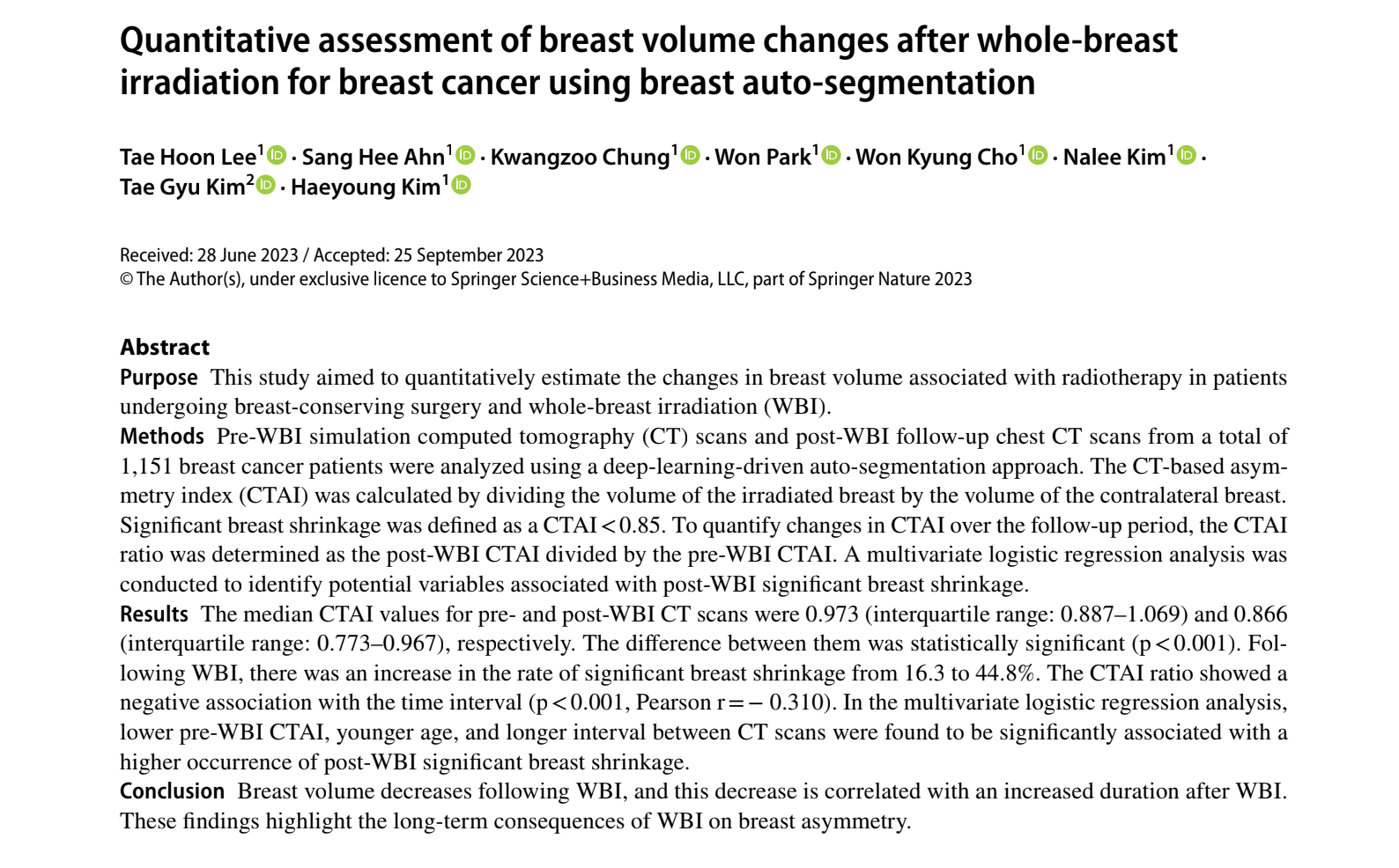 Quantitative assessment of breast volume changes after whole‐breast irradiation for breast cancer using breast auto segmentation